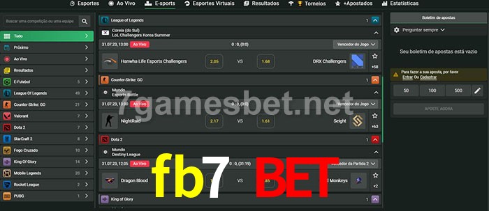 A aposta fb7 bet oferece aos jogadores a experiência mais conveniente de apostas em eSports!